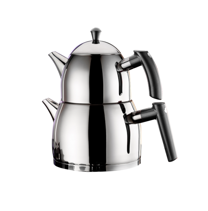 Aryıldız Large Siyah Çaydanlık Takımı Şık tasarımı ve dayanıklı yapısıyla çay keyfinize hem estetik hem de pratik bir dokunuş katar. Marka: Aryıldız Kategori: Çaydanlık Malzeme: Paslanmaz Çelik, Metal/Bakalit/Melamin Kulplar, Cam Kapak Hacim: Demlik 1,5 Litre / Çaydanlık 3 Litre Ürün Açıklaması: Aryıldız Large Siyah Çaydanlık Takımı, özel tasarlanmış gövdesi ve ergonomik kulplarıyla kullanım kolaylığı sağlar. Paslanmaz çelikten üretilmiş çaydanlık ve demlik, uzun ömürlü ve dayanıklıdır. Cam kapakları sayesinde çayın demini ve rengini kolayca takip edebilirsiniz. Modern siyah tasarımı mutfak dekorunuza uyum sağlar. Kullanım Bilgileri: Bulaşık makinesinde yıkanabilir. Metal, bakalit ve melamin kulplar, ısıya dayanıklı olarak tasarlanmıştır. Neden Aryıldız Large Siyah Çaydanlık Takımı? Kaliteli paslanmaz çelik yapısı ile dayanıklılığı garanti eder. Hem günlük kullanım hem de misafirleriniz için ideal bir çay keyfi sunar. Ergonomik tasarımı sayesinde güvenli ve konforlu kullanım sağlar.