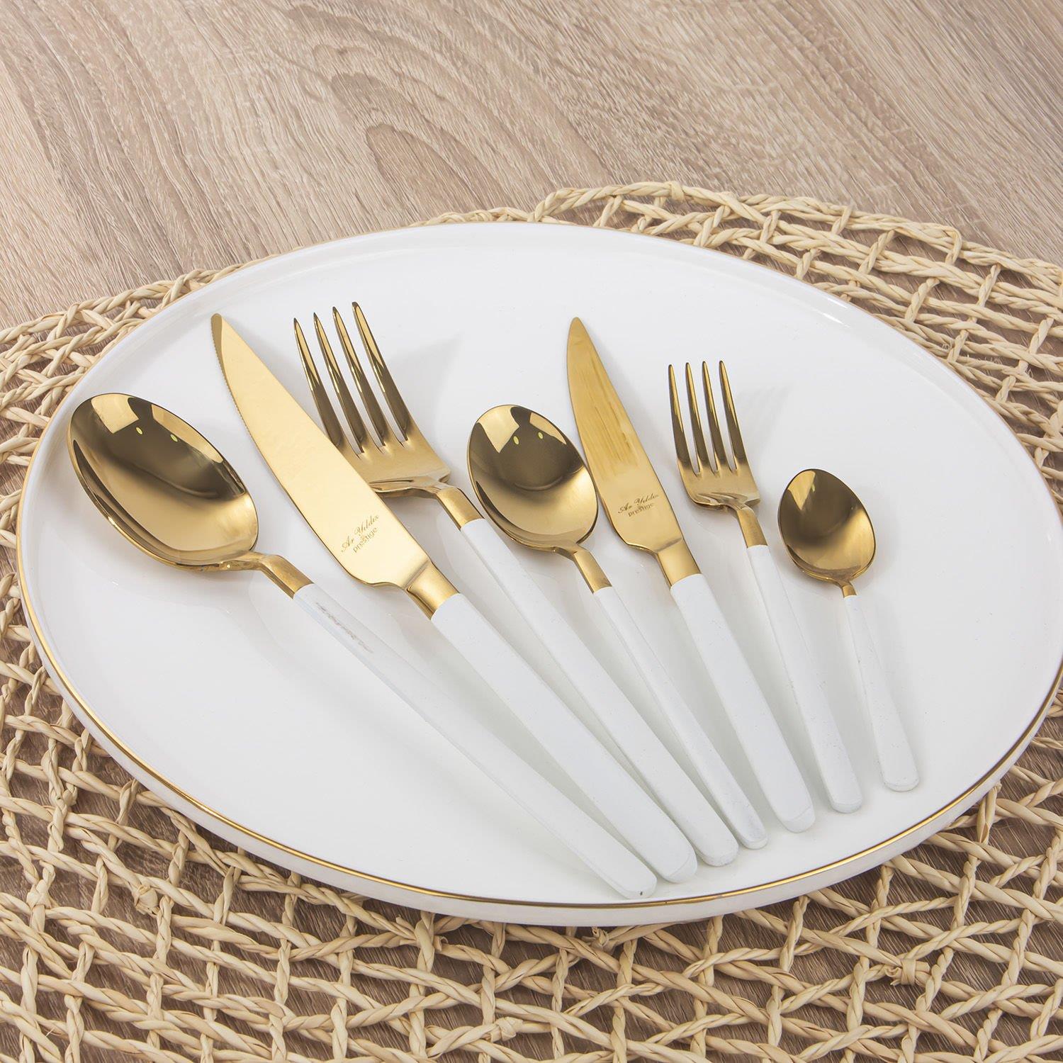 Her bir parçası titizlikle işlenmiş olan bu çatal kaşık bıçak takımı, sofranızda zarafet ve lüksü bir araya getiriyor. Beyaz-Gold renk kombinasyonu, modern ve klasik tarzları birleştirerek her türlü dekorasyona uyum sağlıyor. Ayrıca, 2 yıl garanti ile gelen bu set, alacağınız en güvenli yatırımlardan biri olacak.