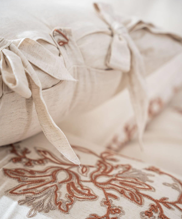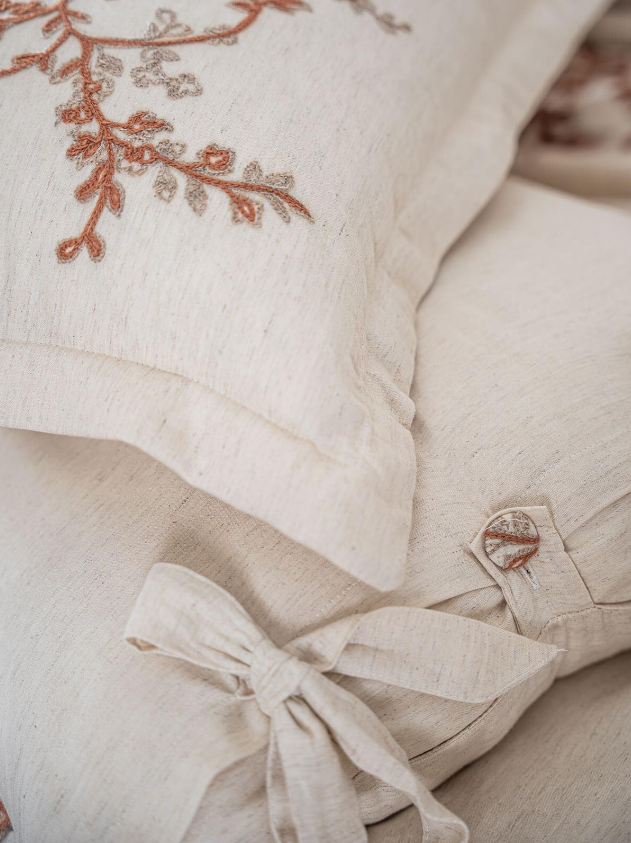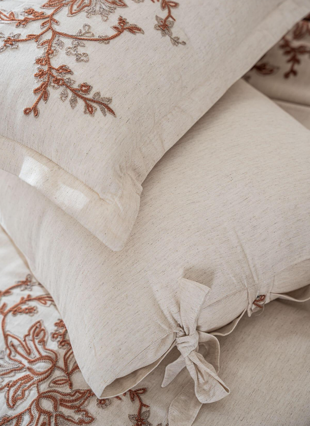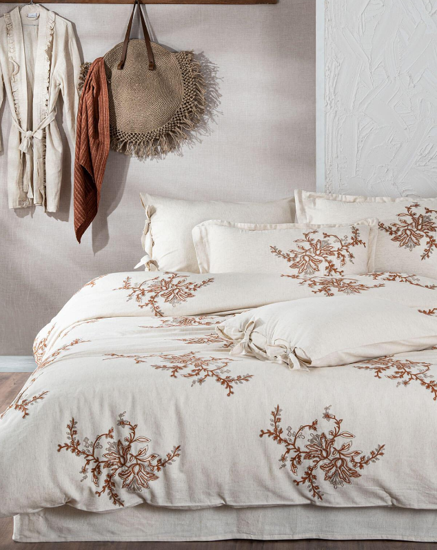 Ecocotton Libera Keten Süzene Nakışlı Çift Kişilik Krem-Terra Nevresim Takımı (P-0000026156)