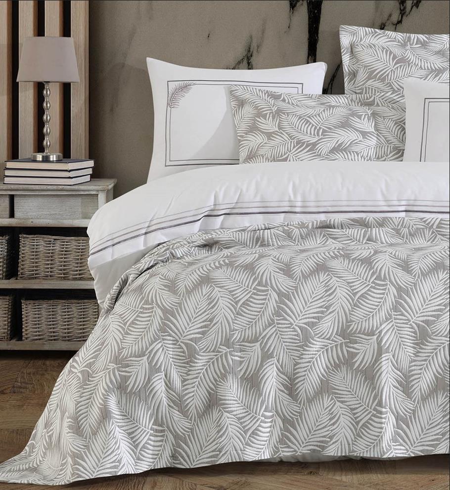 Neden İyi Geceler İstanbul Palm Çift Kişilik Nakışlı Bej Yatak Örtüsü Takımı?