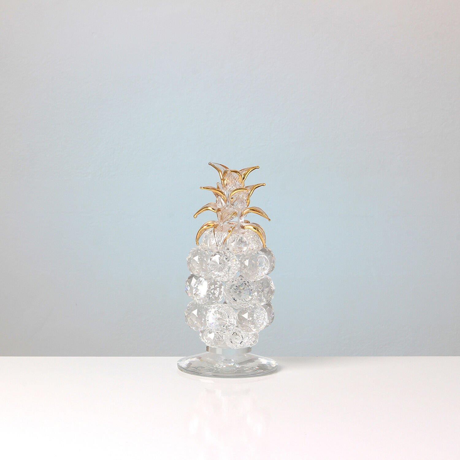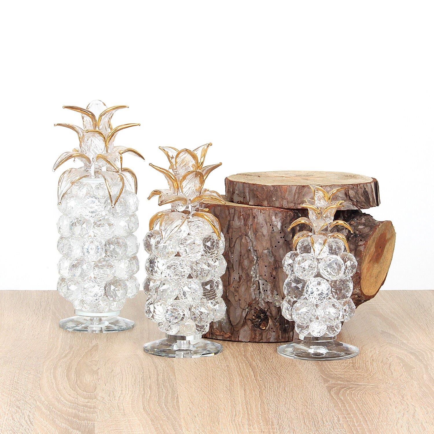 Kristal cam işçiliği, ürünün dayanıklılığını ve estetik değerini artırırken, altın sap detayı, modern ve klasik tarzları bir araya getirerek, ev dekorasyonunuzda fark yaratır. Bu küçük boy ananas, masanızın, rafınızın veya herhangi bir dekoratif alanın üzerinde, hem göz alıcı bir biblo olarak hem de konuşma açacak bir dekoratif obje olarak hizmet edecek.