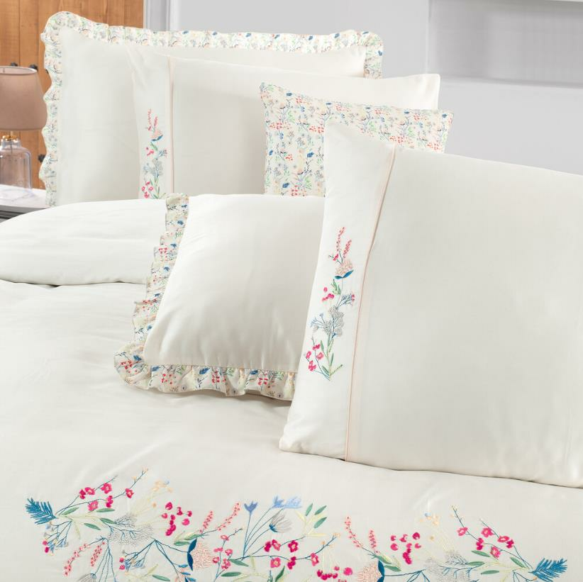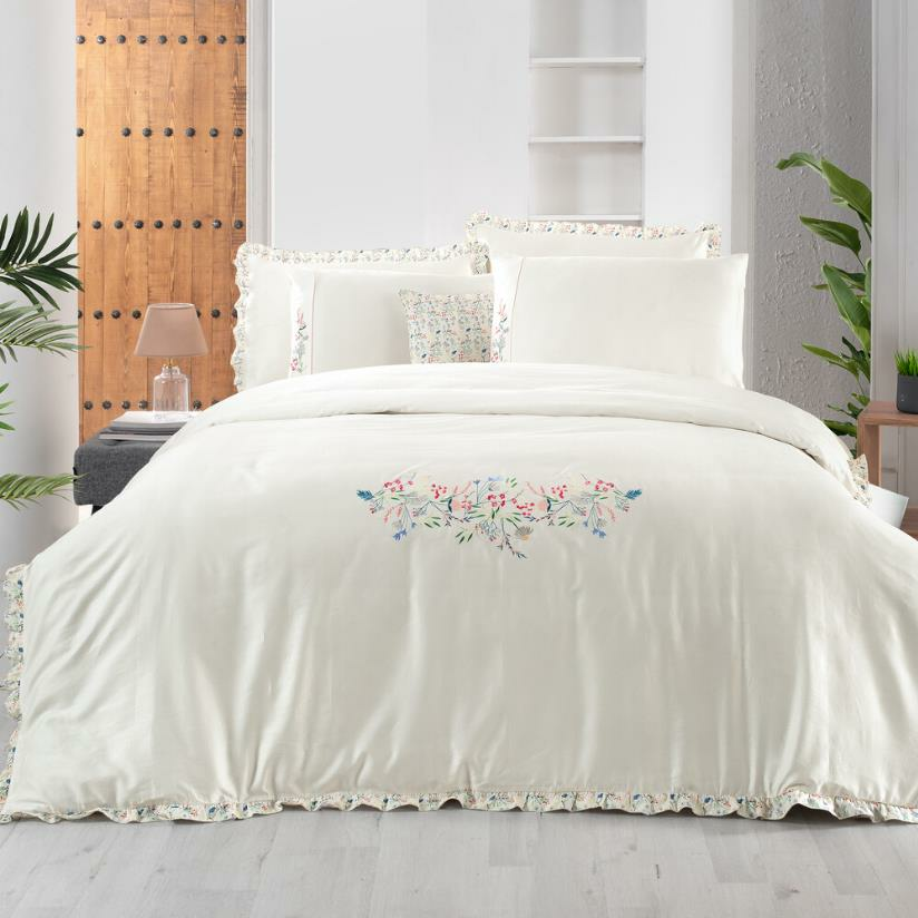 Sarev Nitra Pamuk Saten Çift Kişilik Ekru Nevresim Takımı
