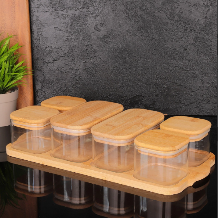 Doğal bambu standı ve zarif cam kaseleriyle sofralarınıza hem düzen hem de estetik kazandırır.
