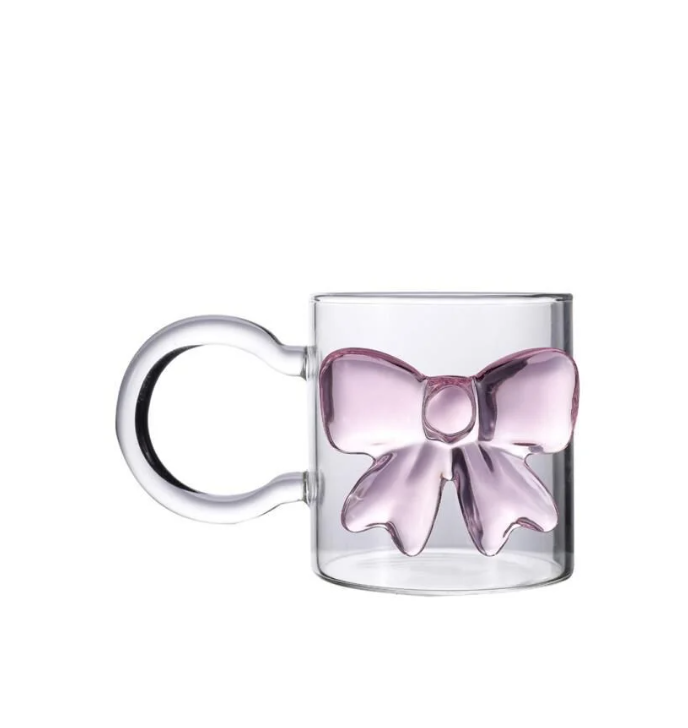 Ürün Kodu: 1S26 Marka: Mien Malzeme: Borosilikat cam Hacim: 350 ml Tasarım: Pembe cam fiyonk detaylı, büyük kulplu Renk: Pembe