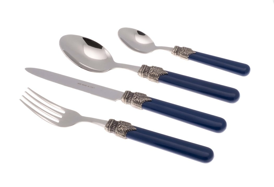 Rivadossi Sandro Classic Lacivert 24 Parça Çatal Kaşık Bıçak Takımı, İtalyan zarafetini sofralarınıza taşıyan şık ve dayanıklı bir seçenektir. %100 İtalyan üretimi olan bu özel set, lacivert sap tasarımıyla klasik ve modern çizgileri bir arada sunar. Ergonomik yapısı sayesinde elde rahat kavranır ve konforlu bir kullanım sağlar.