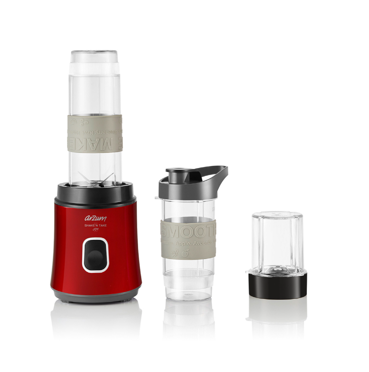 Arzum Shake'N Take Joy, hızlı ve pratik yaşam tarzı için tasarlanmış bir kişisel blender'dır. 600 W gücü, dört keskin paslanmaz çeliğiyle yalnızca meyve ve sebzeleri değil, aynı zamanda buzları da kolayca parçalayabilir.